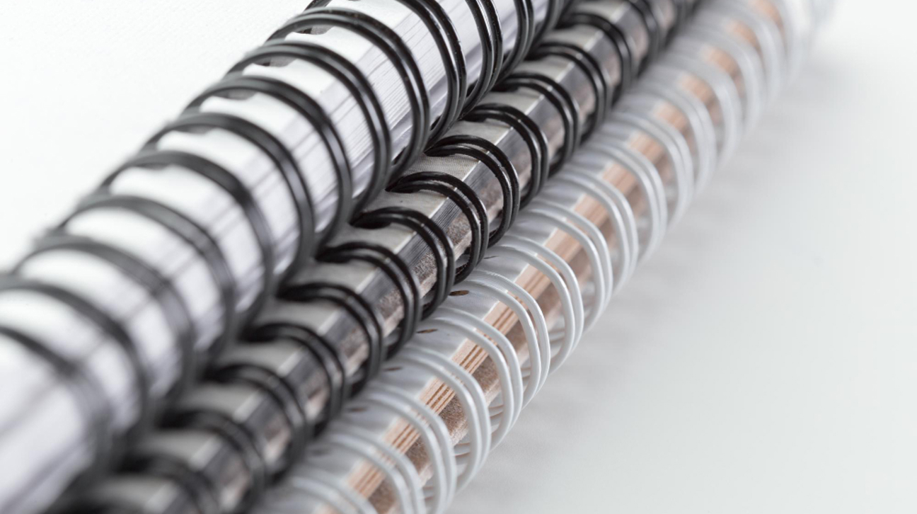What It Is: Spiral binding involves using a plastic or metal coil to bind the pages together, allowing them to lay flat when opened. This method is often used for notebooks, planners, and manuals.