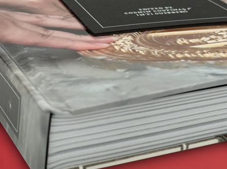 Edges printing on three book edges Emboss and Clear Foil Stamping on Front and back cover